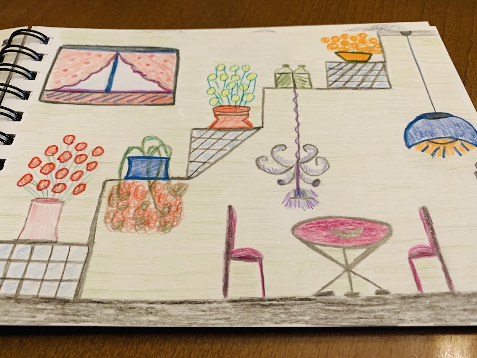 /Dibujos míos, mi cuaderno de dibujo, sus casas, sus árboles, su cielo, sus montañas, su todo/